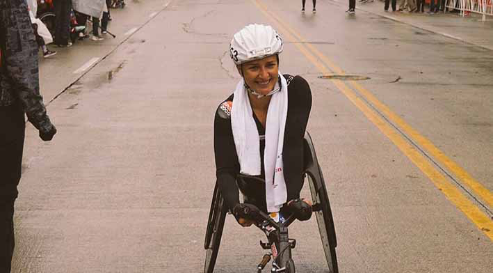 The 20-year-old, coached at the nearby University of Illinois, did battle with two titans of the sport in Marcel Hug and David Weir and emerged triumphant for the first time against his vastly experienced foes.